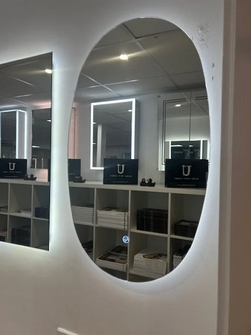 Vanity Hall Basin Units & Mirror, Minerva Solid Worktop, Sonas Tall Basin Mixer & Bathrooms To Love Marble Effect Basin.