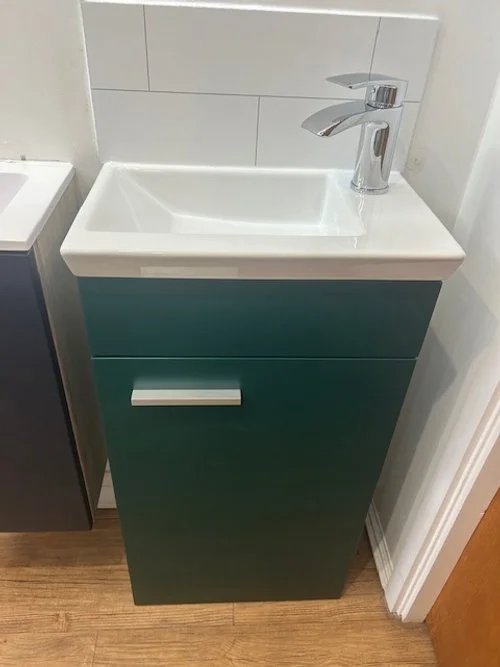 Sonas ‘Charm’ floor standing cloakroom unit with Sonas ‘Corby’ tap